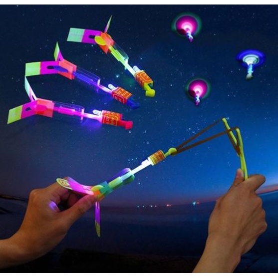 Amazing LED Light Flying Toy Rotating Catapult Helicopter Party Classic Toy Fun Gift Elastic Flashing Swords