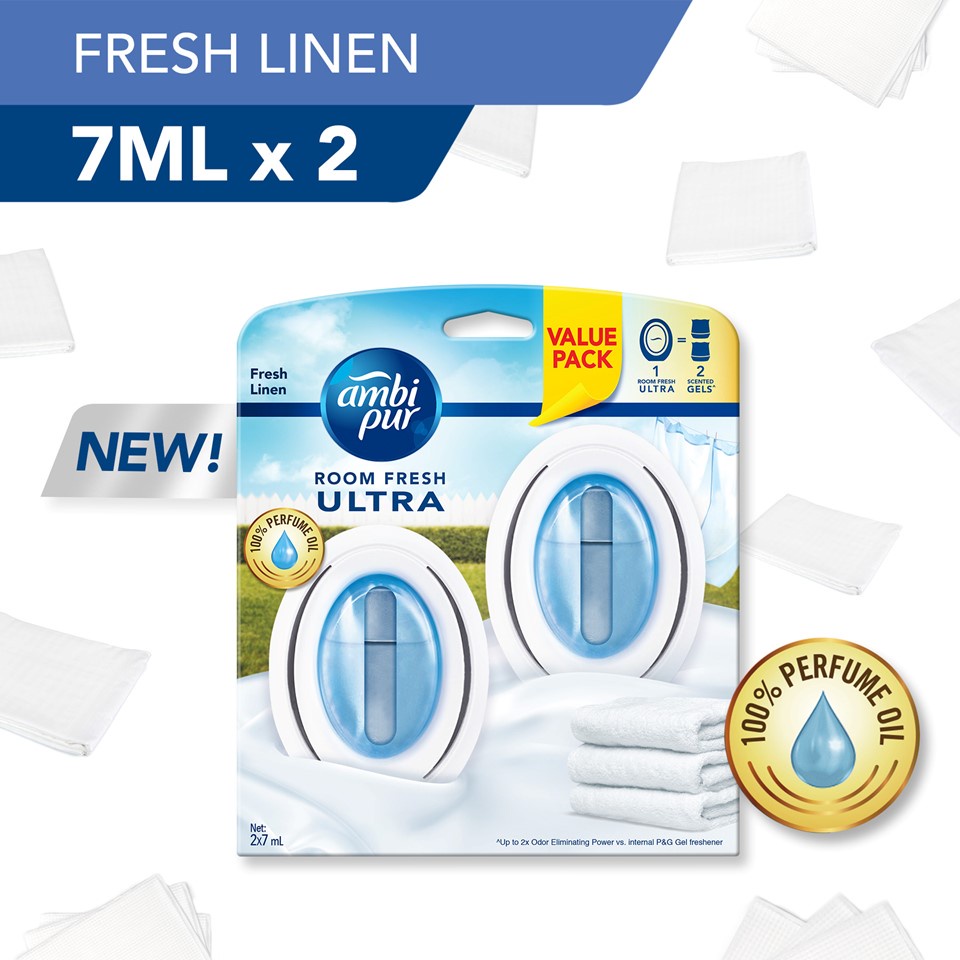 Ambi Pur Air Freshener Gel Bathroom Fresh Linen 2x7ml