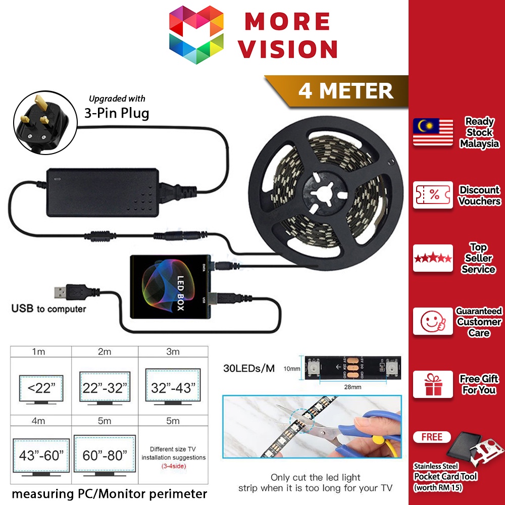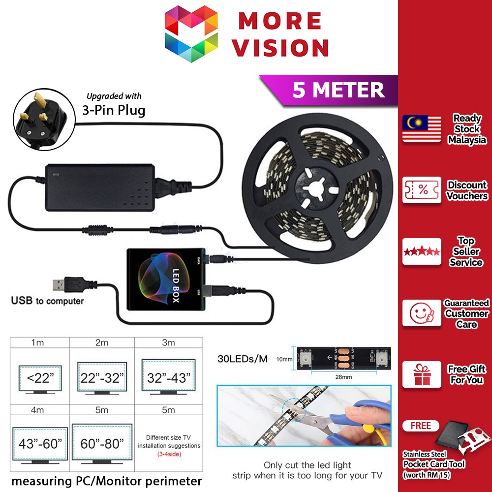 Ambilight LED Strip Light RGB 1m-5m Set USB for Desktop Screen Monitor Ambient TV Backlight Tape