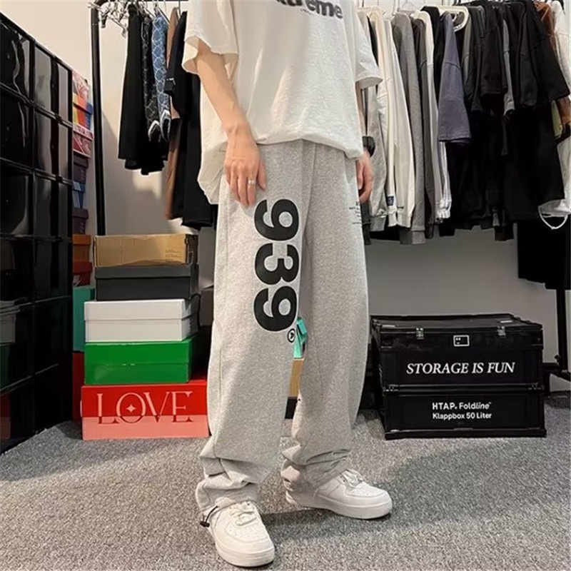 American Casual 939 Letter Printed Sweatpants Men Women Trendy Large Size Hip-Hop Teenagers Loose Versatile Straight Wide-Le