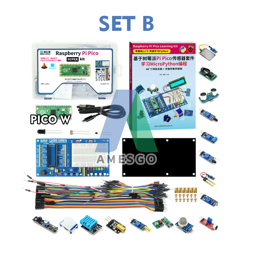Amesgo Raspberry Pi Pico W Microcontroller Development Box Basic Advanced Dev Kit With 16 Sensors