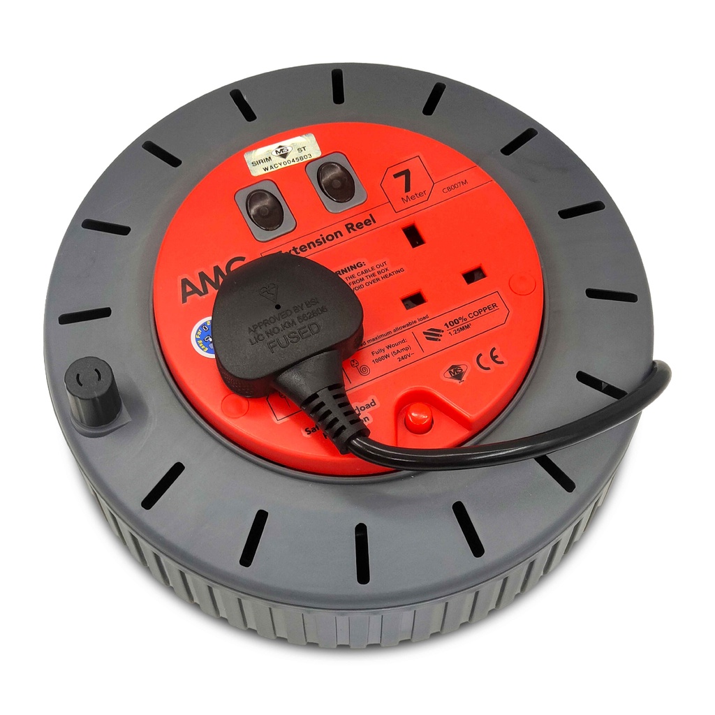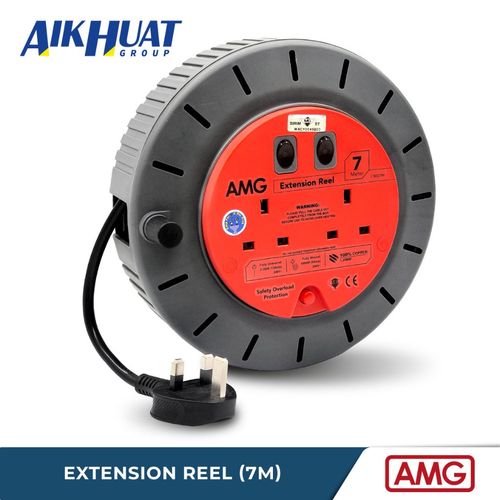 Amg Extension Reel 100% Pure Copper (3120w/ 7 Meter/ 2 Gang) 3 Core 1.25mm Socket Extension Cable Box SIRIM APPROVED