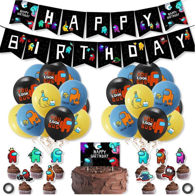 Among Us Theme Party balloon Among Us Birthday Party decorations Happy Birthday Banner,Balloons,Cake Topper for Among Us Theme Party Supplies