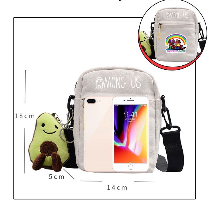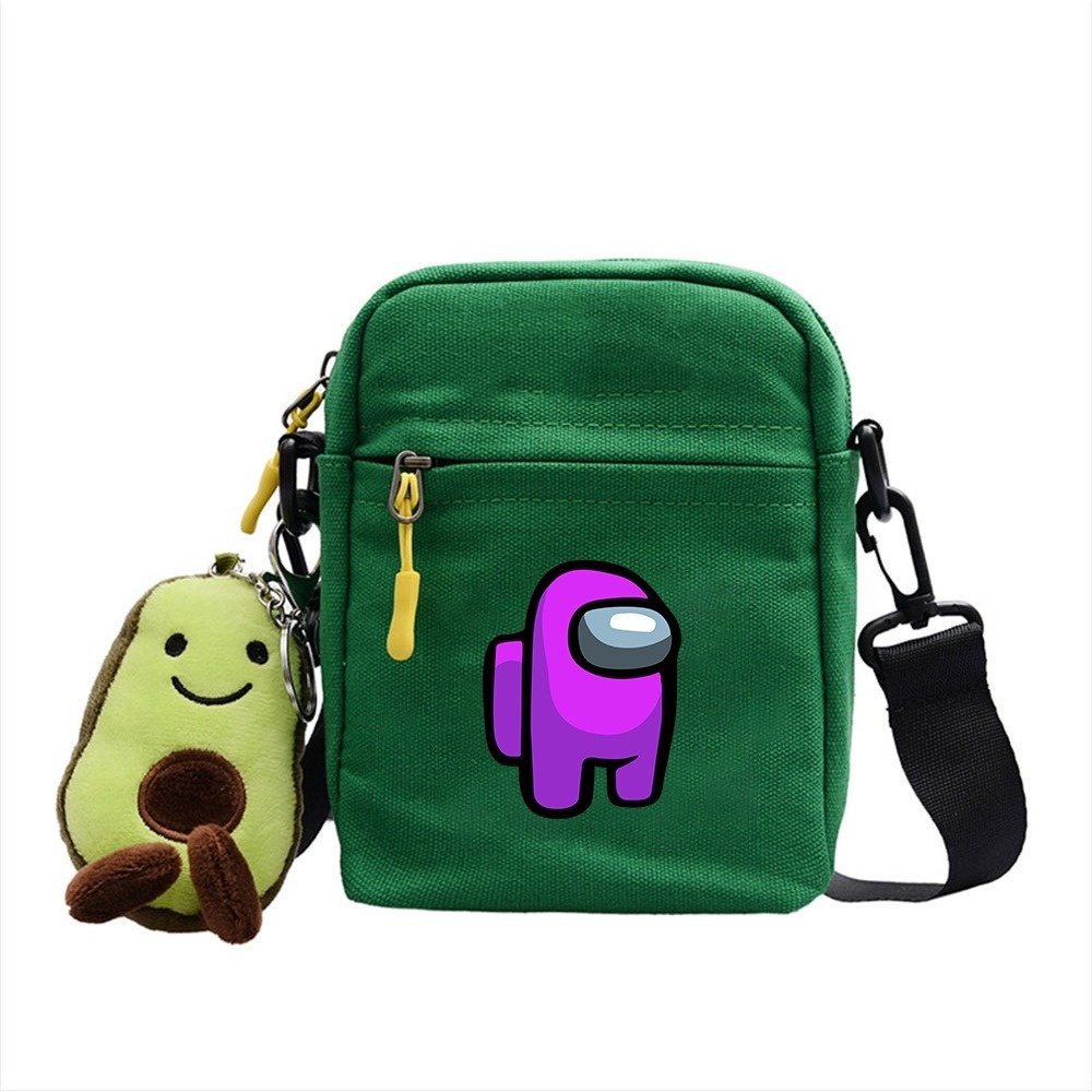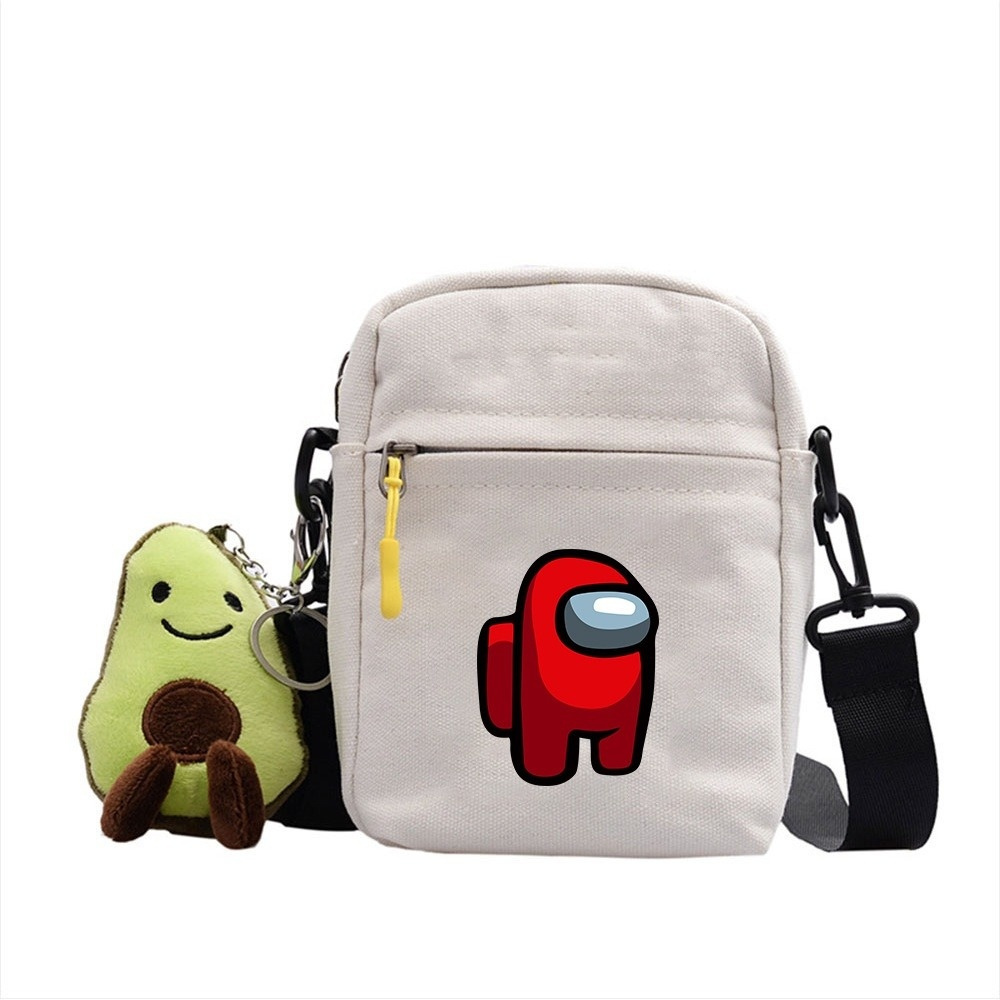 Among us kids Canvas Mini Shoulder Bag Cute Cartoon Crossbody Bags with Keycahin Anime Game Printed Messager Bag Satchel