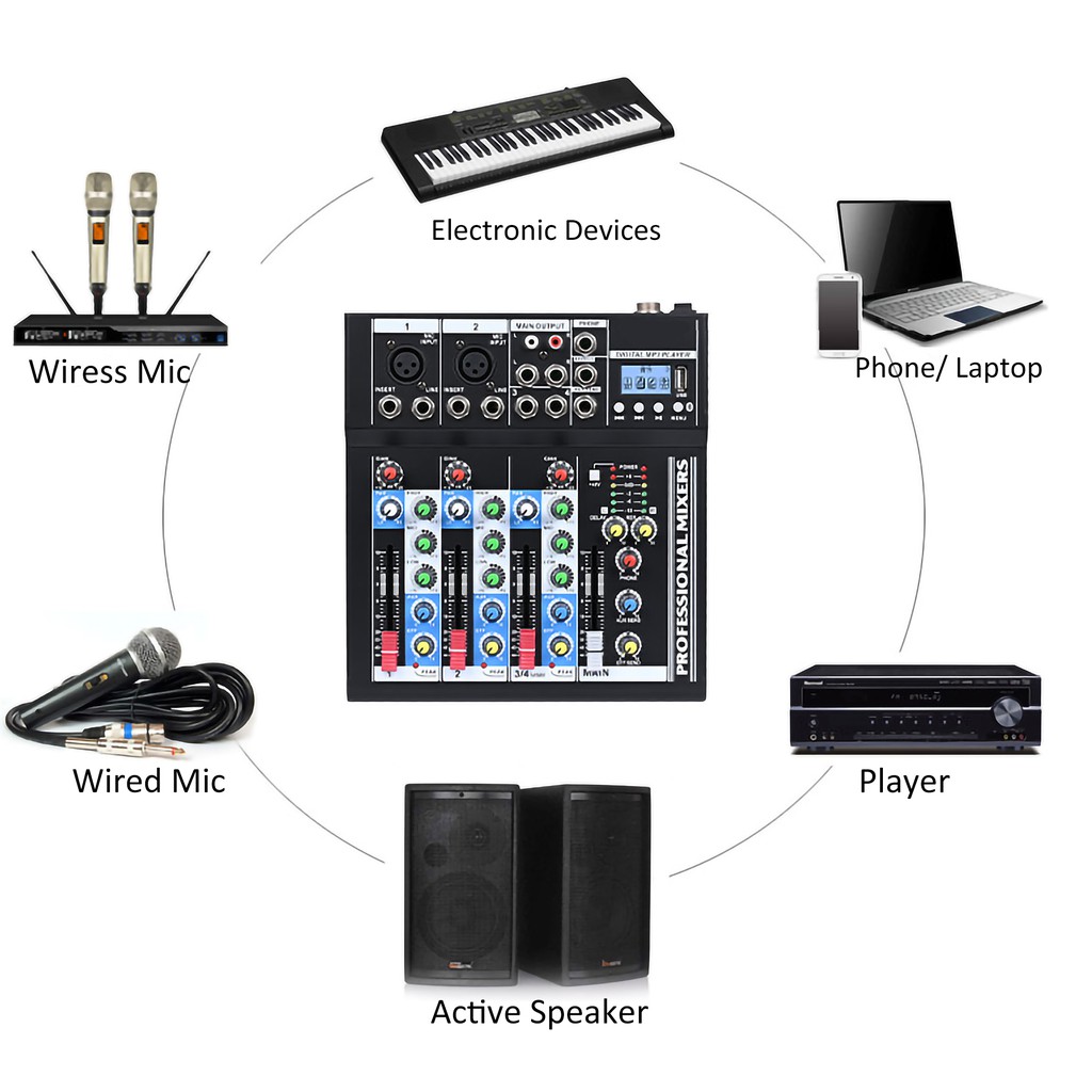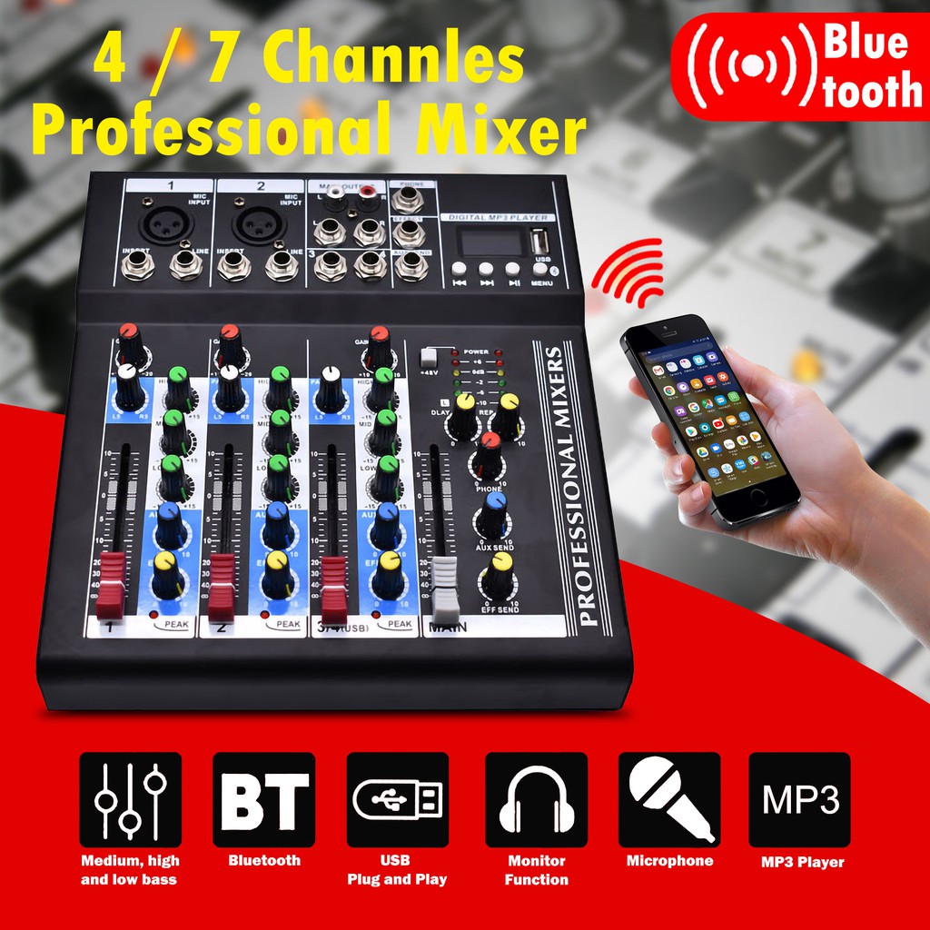 AmpAudio 4/7 Channels Pro Console Mixer Live Studio Audio Mixer USB Mixing Console Mute bluetooth
