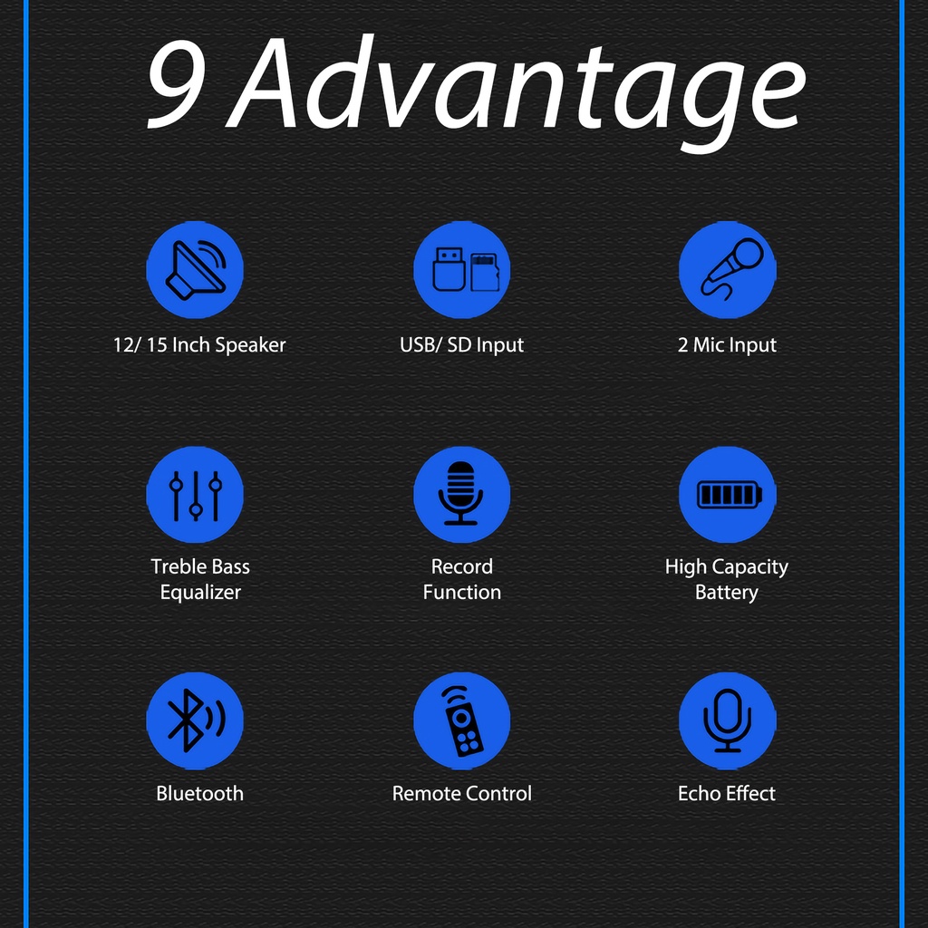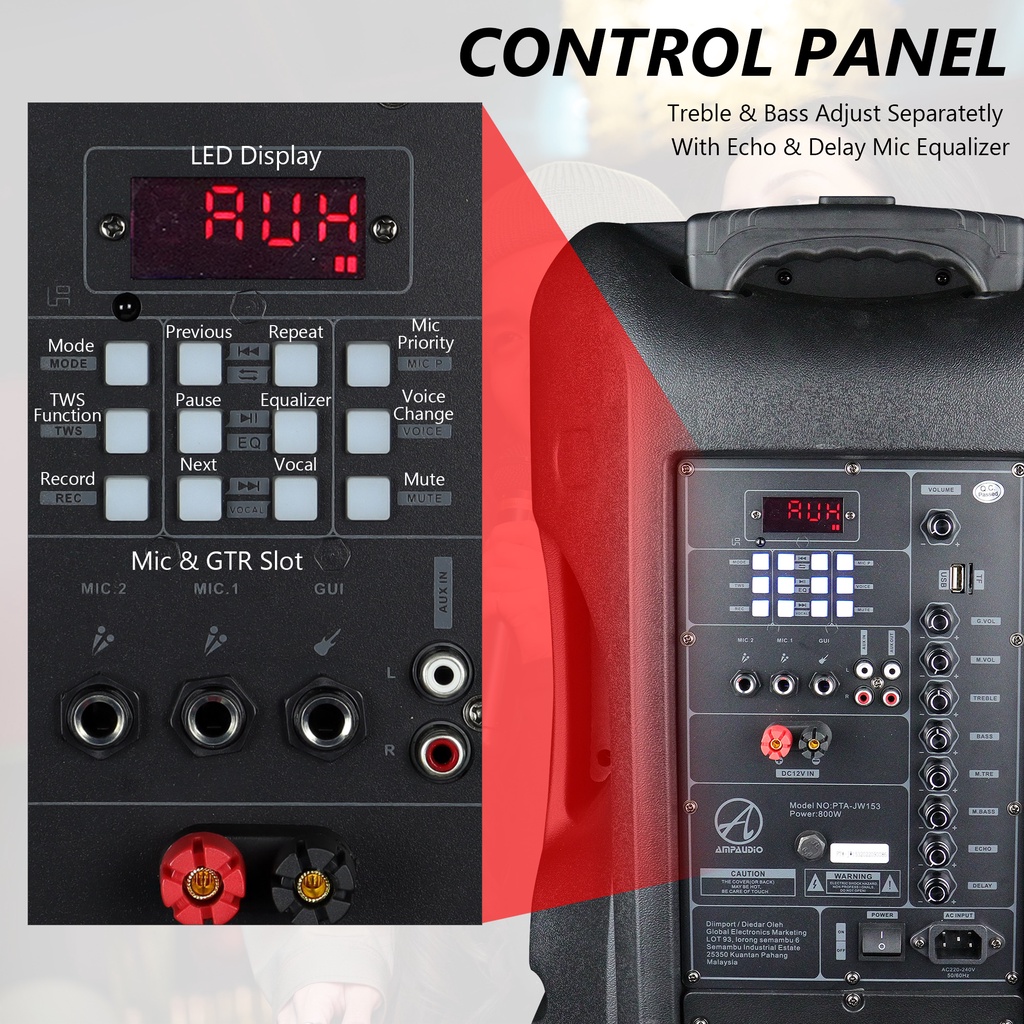 Ampaudio Portable 12/15 Inch Bluetooth Portable Speaker With 2 Wireless Mic