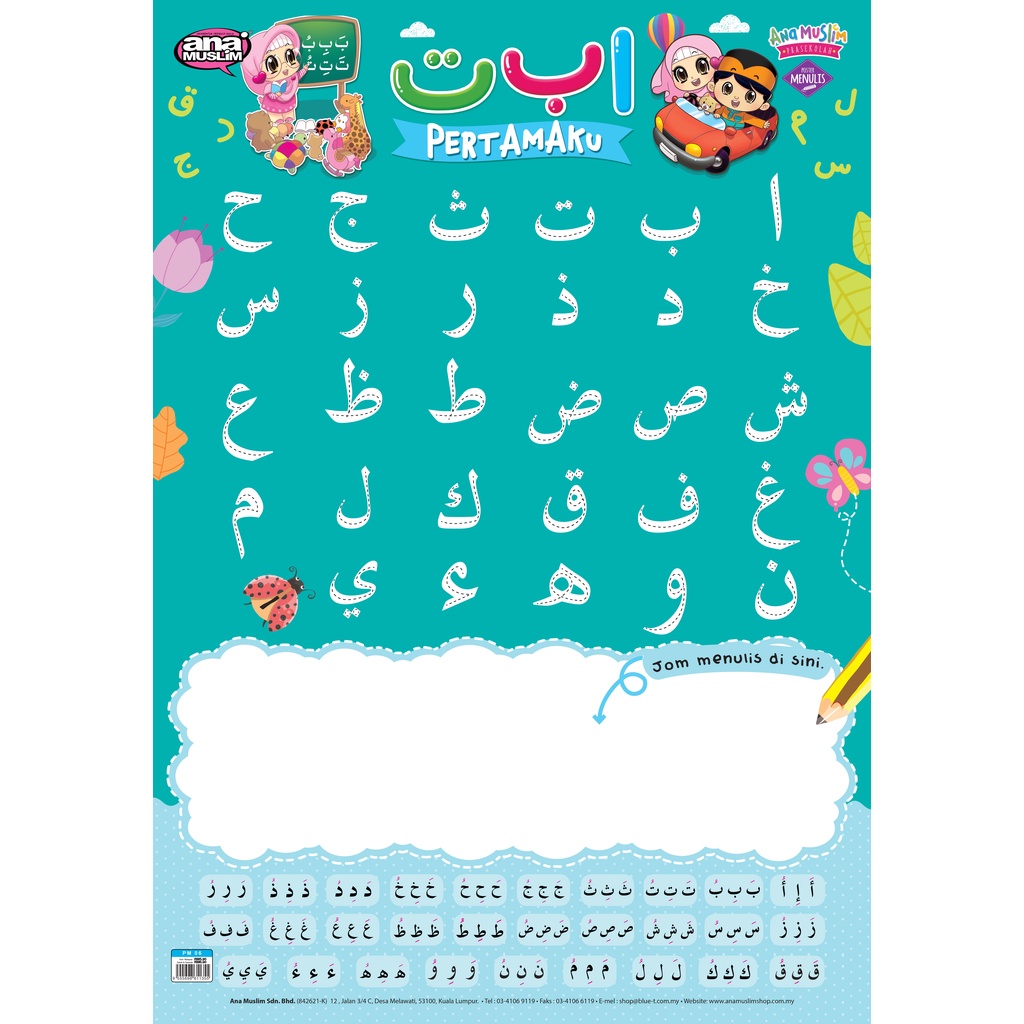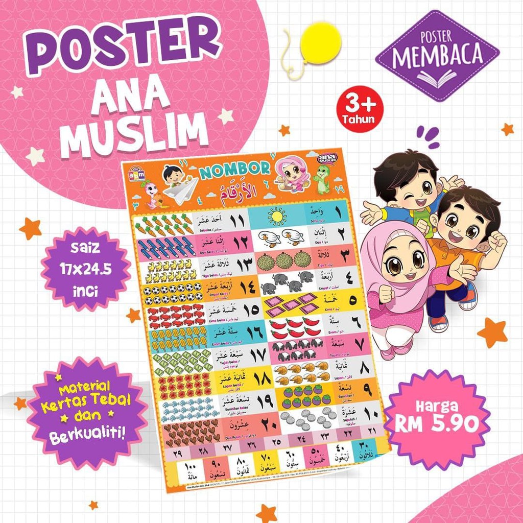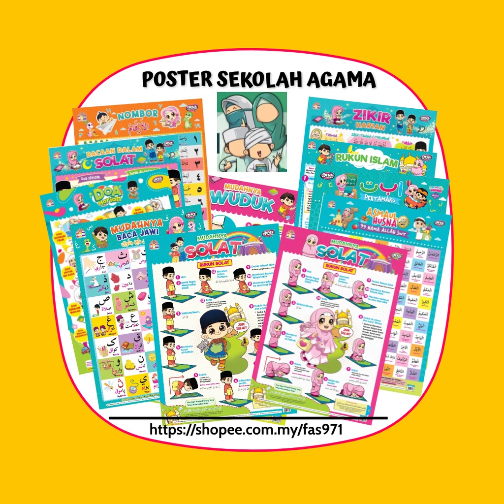 Ana Muslim Poster Sekolah Agama - Asmaul Husna Jawi Doa Harian Wuduk Solat Zikir Rukun Iman Islam Ramadhan Arab