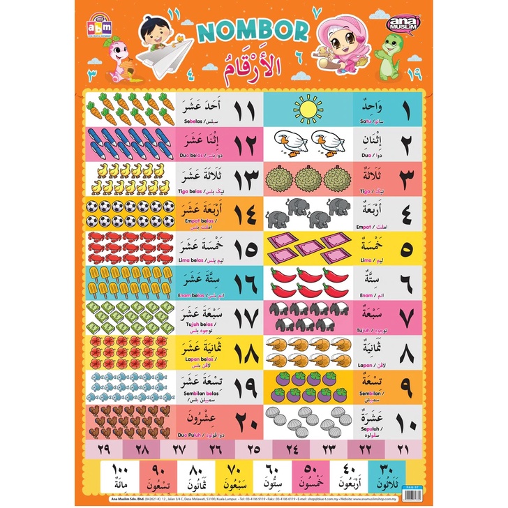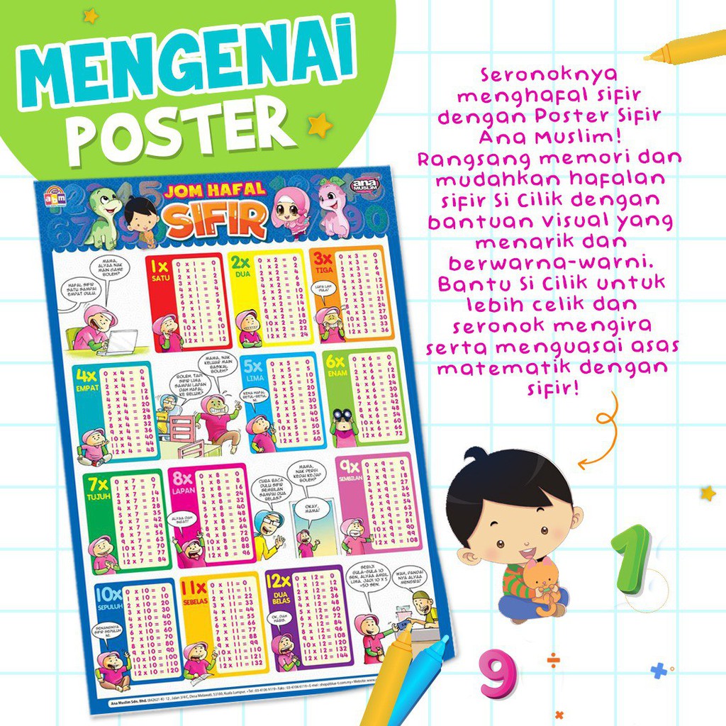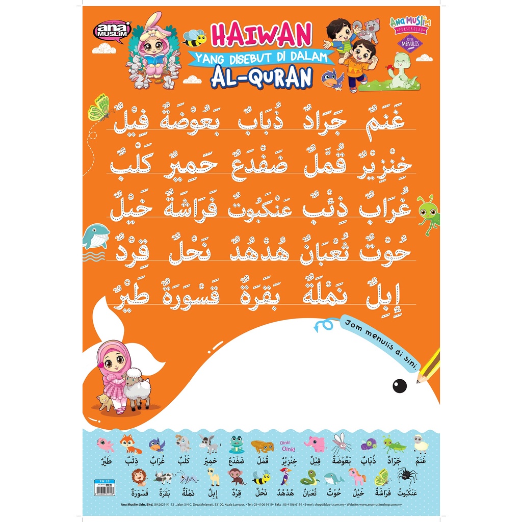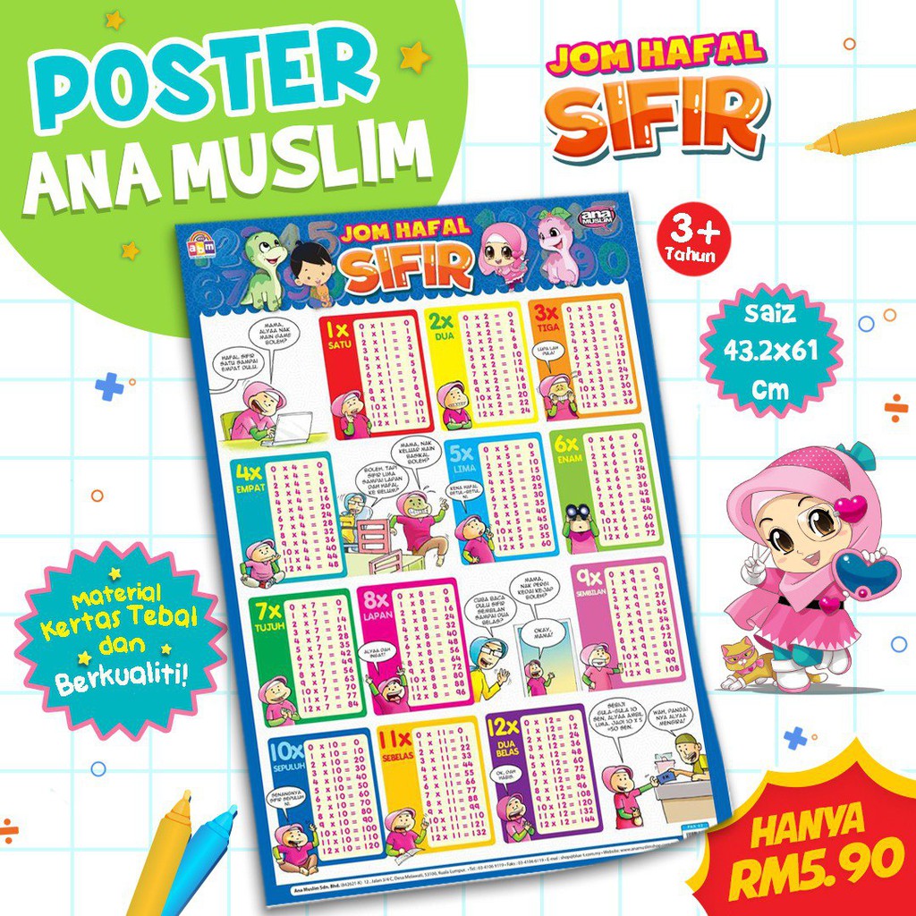 Ana Muslim Poster Sekolah Agama - Asmaul Husna Jawi Doa Harian Wuduk Solat Zikir Rukun Iman Islam Ramadhan Arab