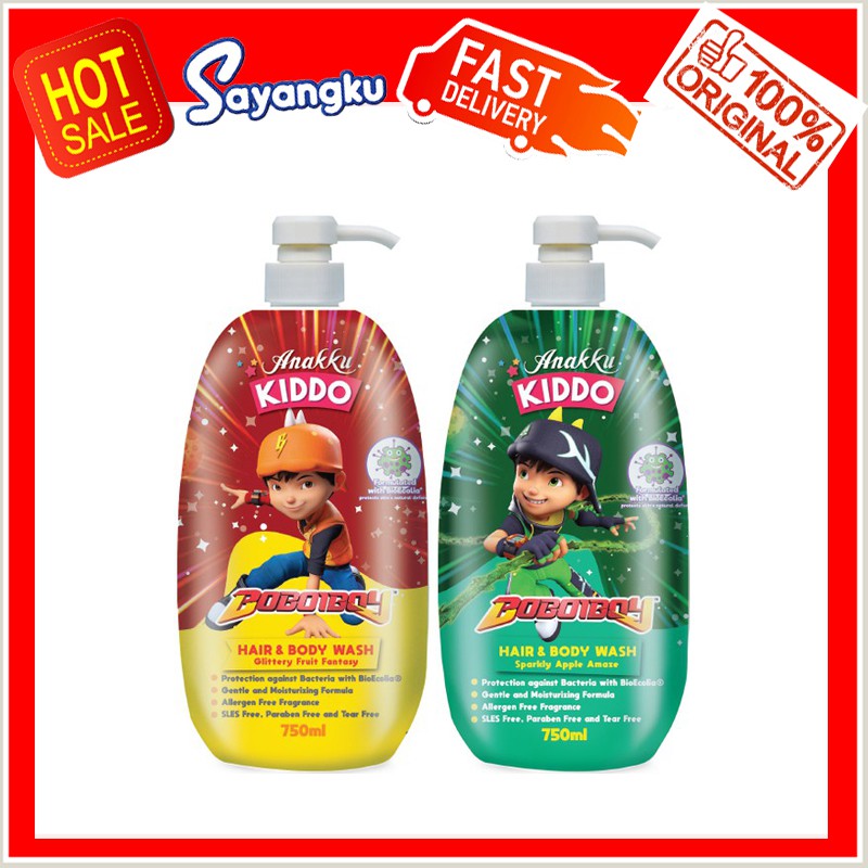 Anakku Kiddo Boboiboy Hair & Body Wash - 750ml Sparkly Apple Amaze / Glittery Fruit Fantasy