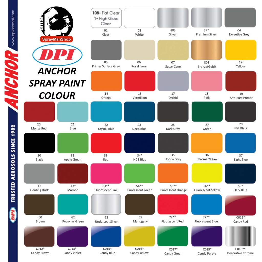 Anchor Colour Spray Paint 400ML (STANDARD COLOUR, FLUORESCENT COLOUR AND CANDY TONE COLOUR)