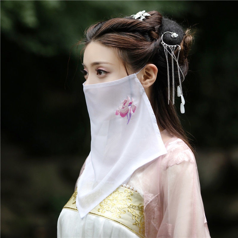 Ancient Style Embroidered Veil Ancient Hanfu Cover Face Hanging Ear Veil Ancient Costume Hanfu Masked