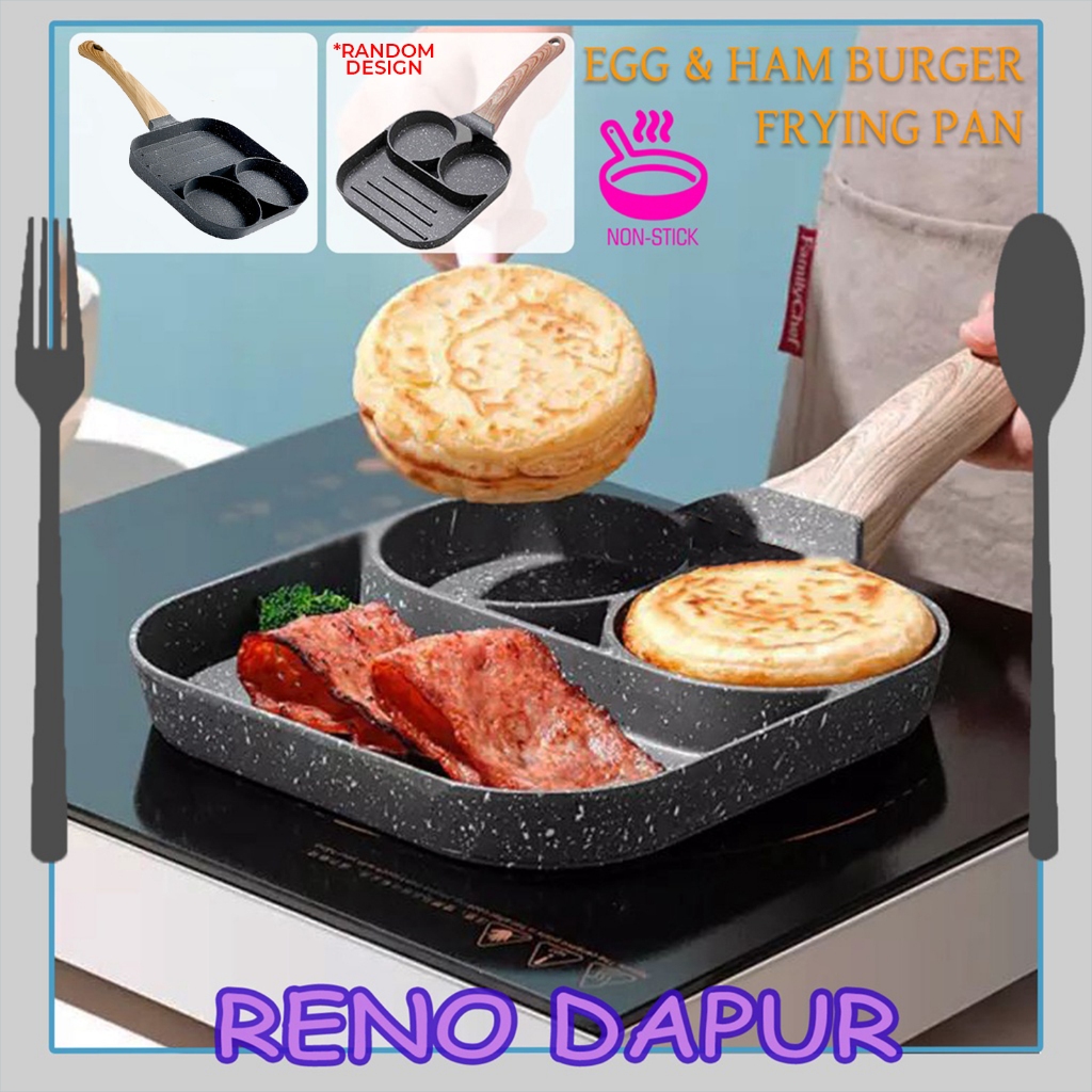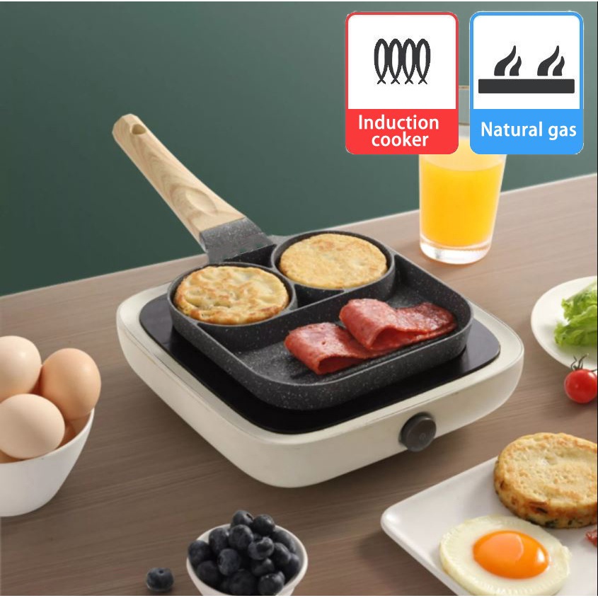 Fried Egg 3 Hole Frying Pan Burger Frying Non Stick Flat Frying Pan Pancake Maker Omelette Pan Kuali Telur