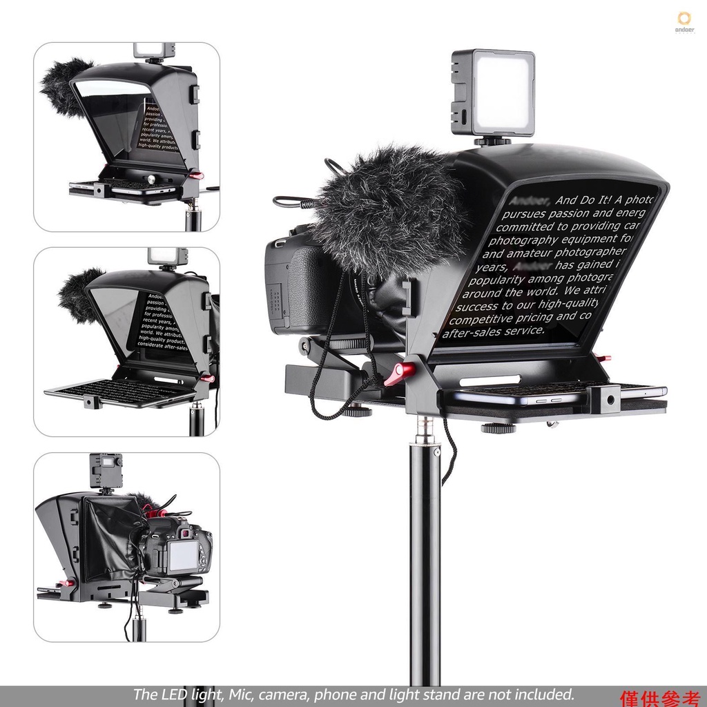 Andoer Universal Portable Teleprompter Prompter for Smartphone/Tablet/DSLR Camera Video Recording Live Streaming Interview Presentation Stage Speech with Remote Control