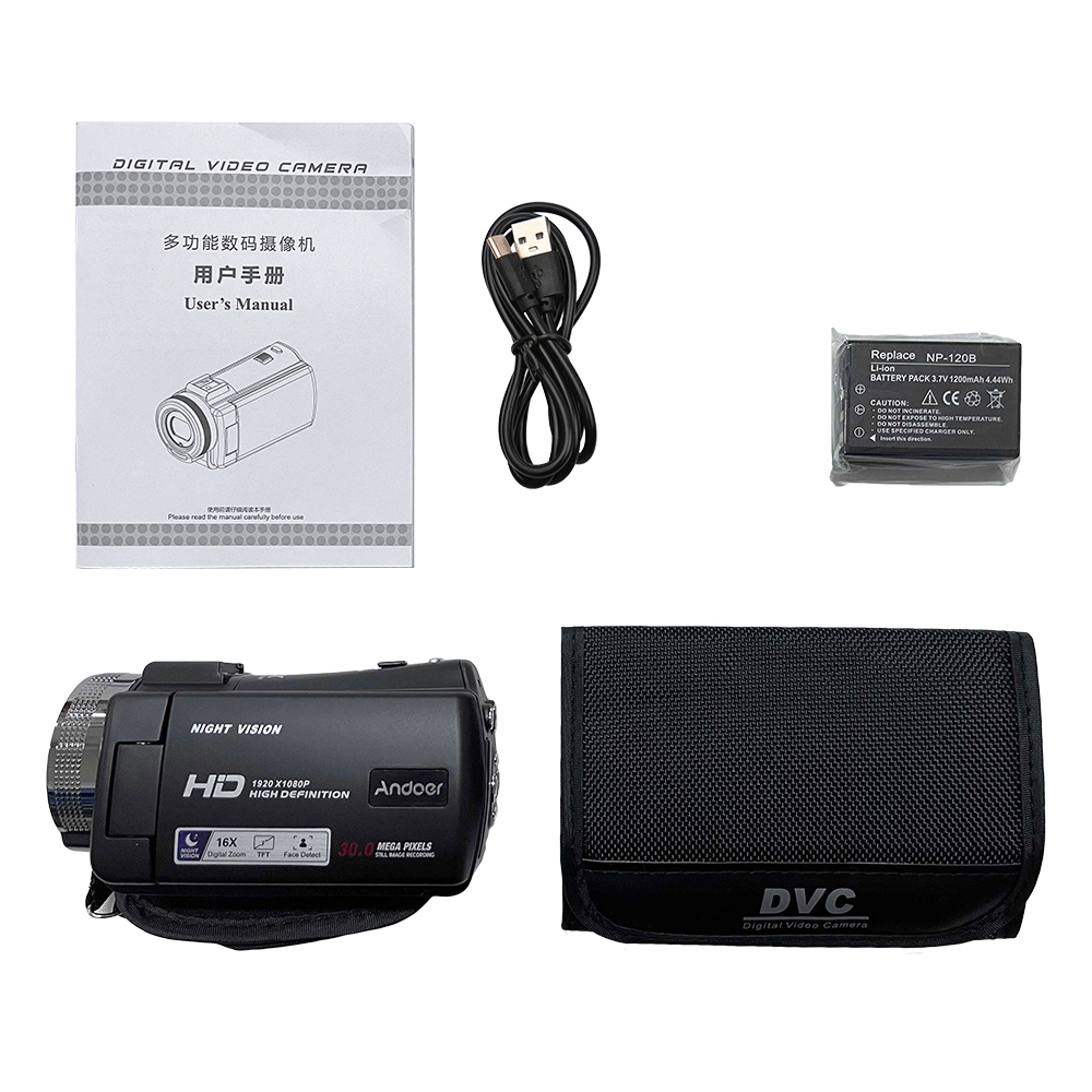 Andoer V12 1080P Full HD 16X Digital Zoom Recording Video Camera Portable Camcorder with 3.0 Inch Rotatable LCD Screen Max. 30 Mega Pixels Support Night Vision Face Detection Face Beautification Tolomall