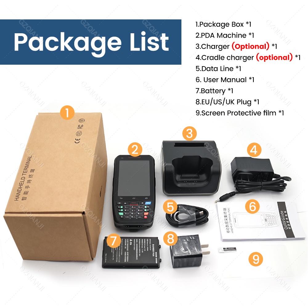 Android 10 PDA Terminal Wifi Handheld 4G Data Collector with 2D QR Barcode Scanner Reader Warehouse Mobile Device Charge Cradle