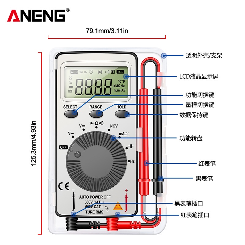 Aneng Digital Multimeter Ultra-Thin Mini Voltage Ammeter Portable Card Digital Multimeter