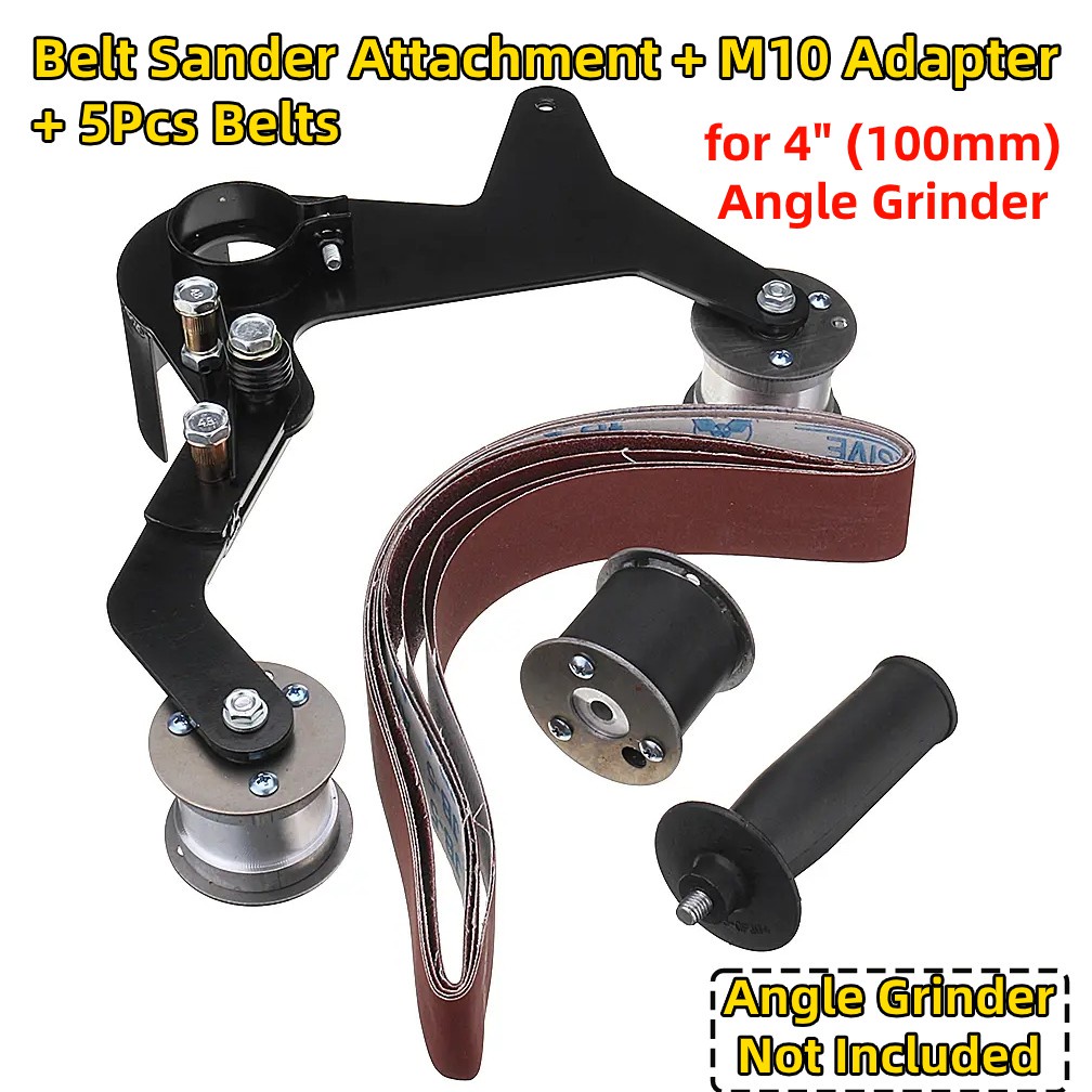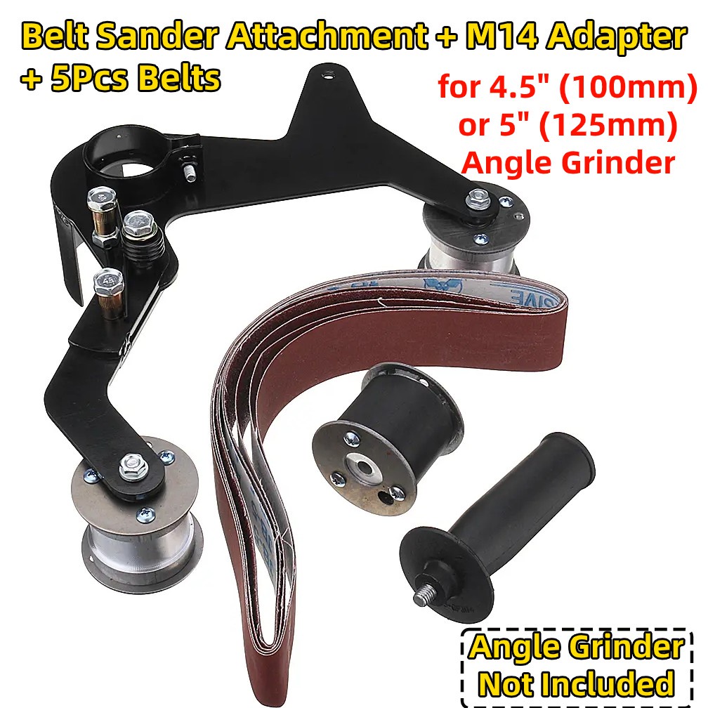 Angle Grinder Manual Belt Sander Attachment Grinding Pipe and Tube for 100 115 125 Angle Grinder, 40mm Width Belt Steel Metal Wood Sanding Belt Adapter, for 4", 4.5" or 5" Angle Grinder