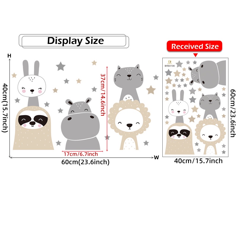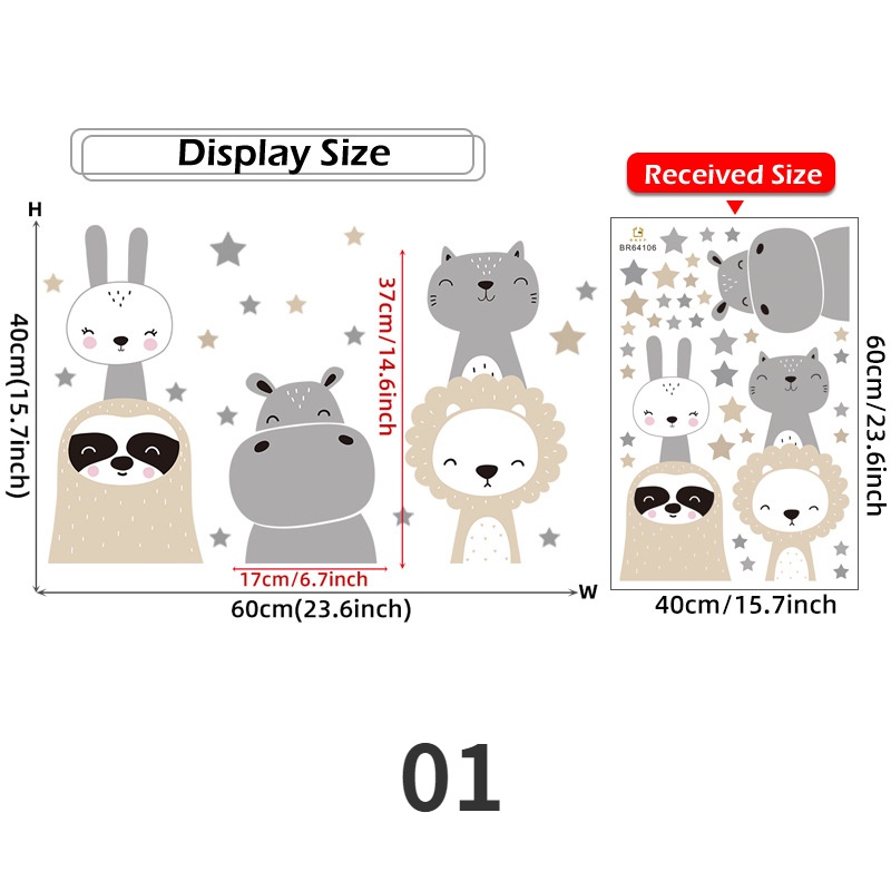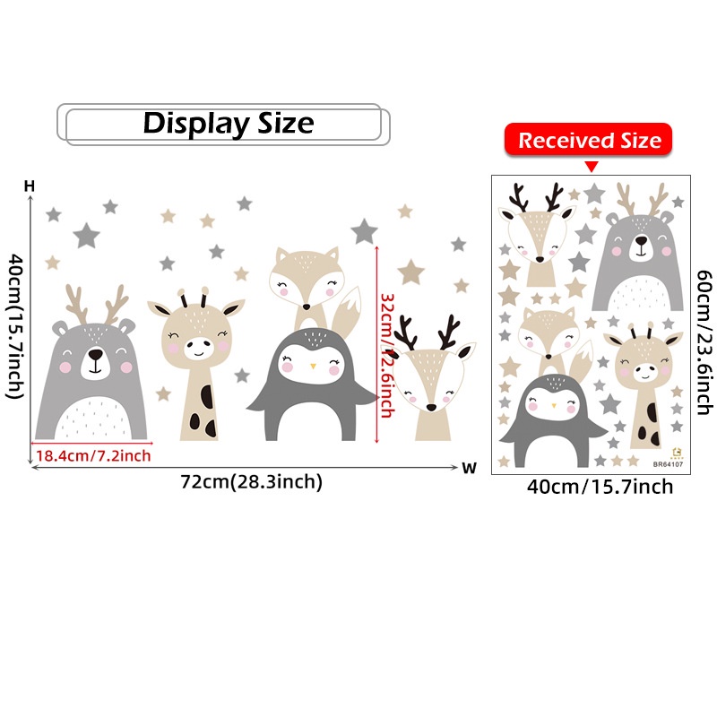 Animal Cartoon Wall Stickers for Kids Rooms Giraffe Fox 3D Wallpaper Large Removable Decals DIY Home Decoration Art Mural