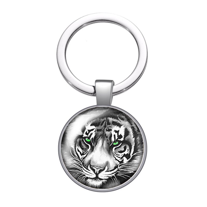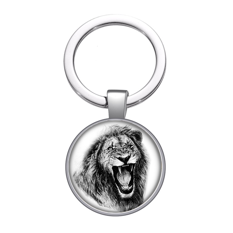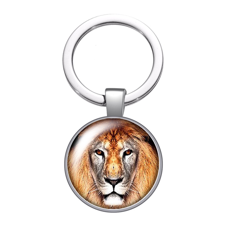 Animals Lion Tiger leopard face beast glass cabochon keychain Bag Car key Rings Holder silver plated key chains Men Women Gifts