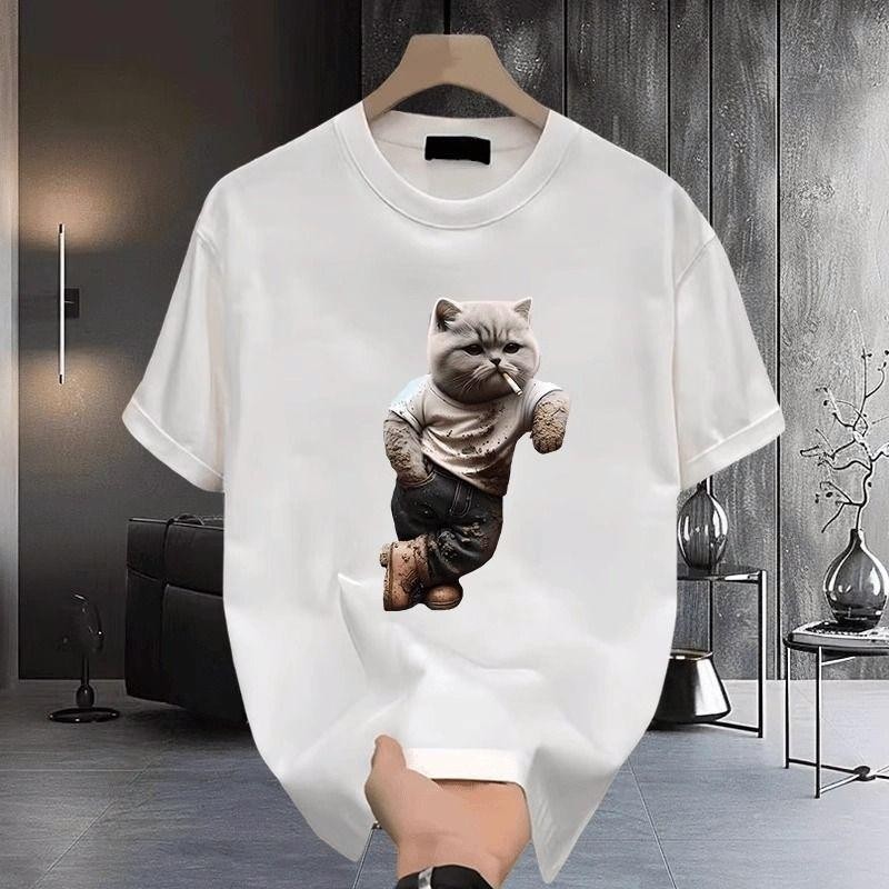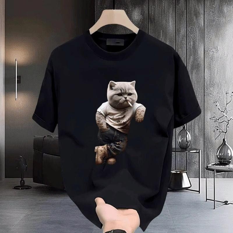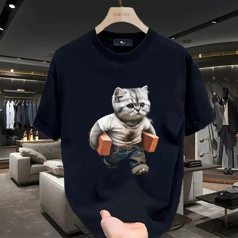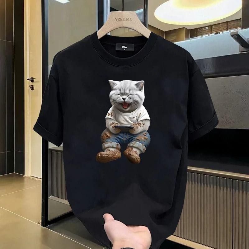 Animated Cartoon Round Neck T-Shirt 100% Cotton Island Painted Style Silk Lint Men's Table Man Clothing