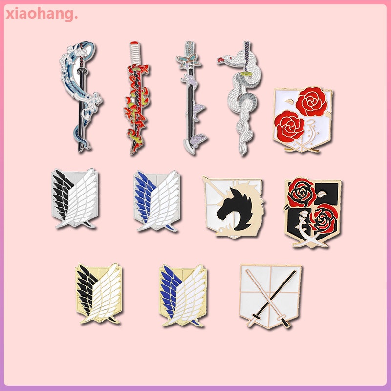 Anime Attack ON Titan Lapel Pin Brooch Rose Feather Weapon Eren Jaeger Metal Badge Demon Slayer Pins Jewelry Accessories Gifts