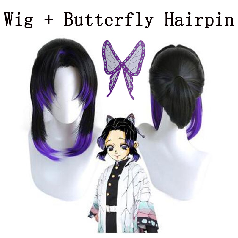 Anime Demon Slayer Kimetsu no Yaiba Kochou Shinobu Cosplay Wig + Cap + Butterfly Hairpin