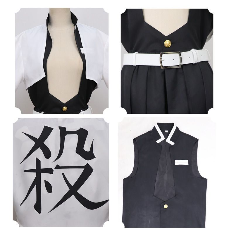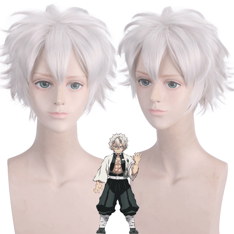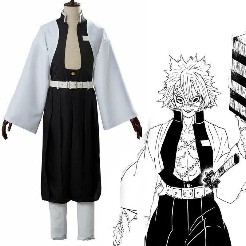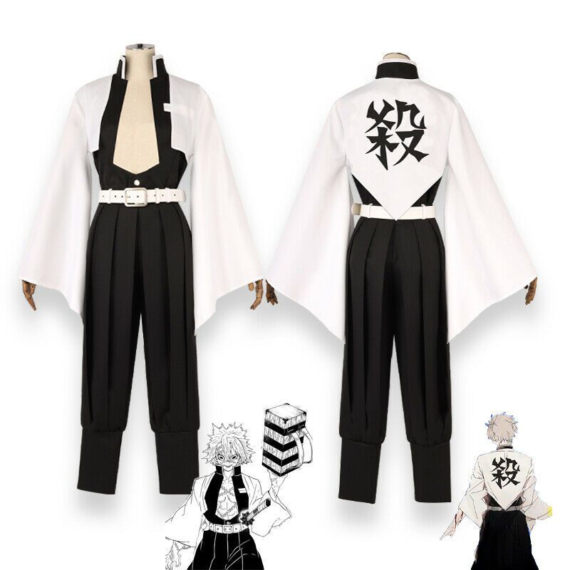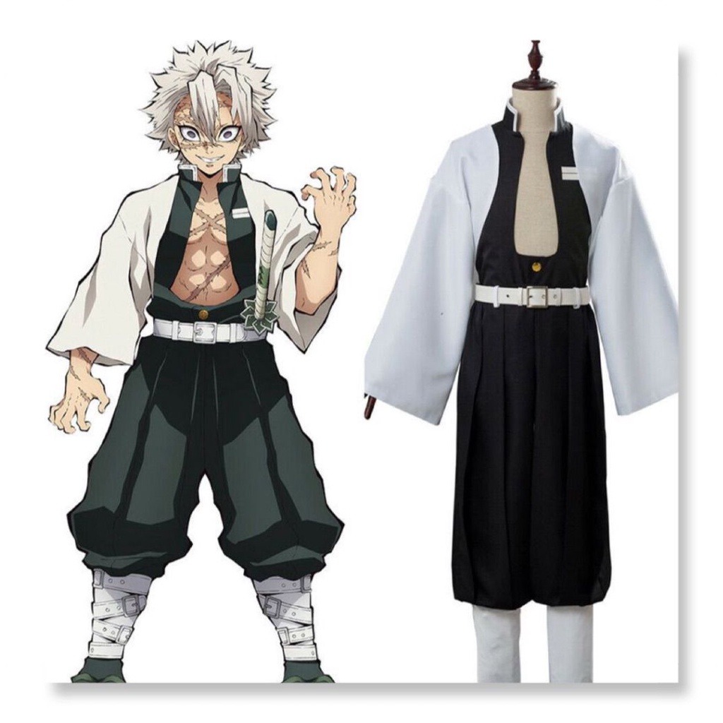 Anime Demon Slayer Kimetsu no Yaiba Wigs Wind Pillar Sanemi Shinazugawa Cosplay Costume Set Halloween