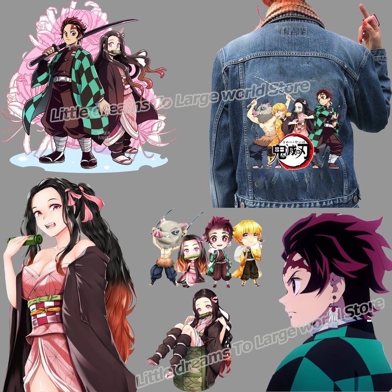 Anime Demon Slayer Lron On Patches Uniform DIY Embroidered Patch Clothes Washable Thermal Transfers Sticker On Patches