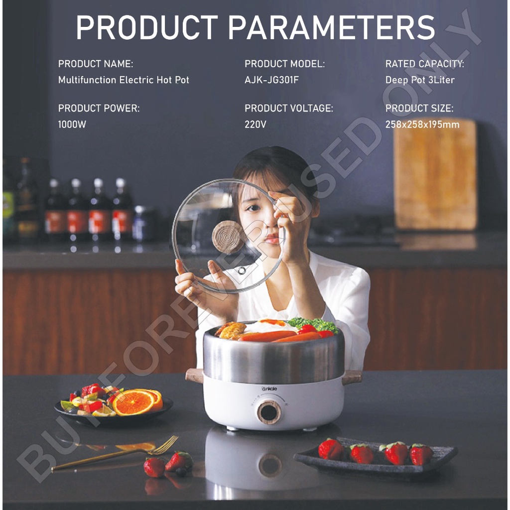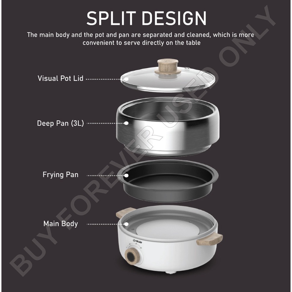 Ankale Electric Hot Pot 3L Split Pot Non Stick Electric Pot Frying Hot Pot Cooker 220V