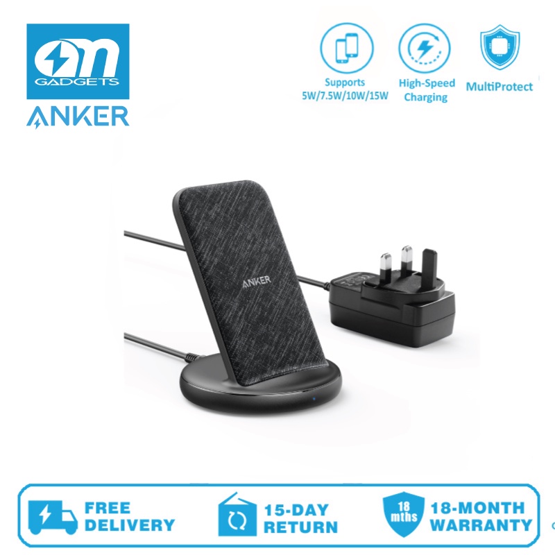 Anker B2529 PowerWave II Stand, Qi-Certified 15W Max Fast Wireless Charging Stand with adapter for iPhone and Android
