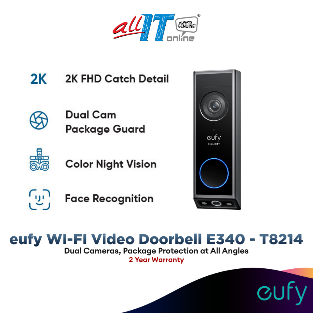 Anker Eufy T8214 Video Doorbell E340 / Anker E8220 eufy Wi-Fi Video Doorbell S200 with Wireless Chime