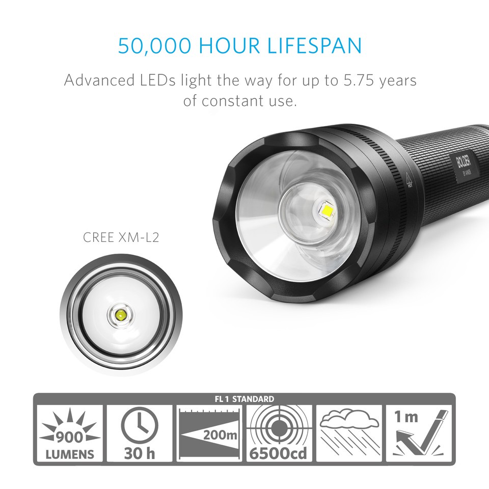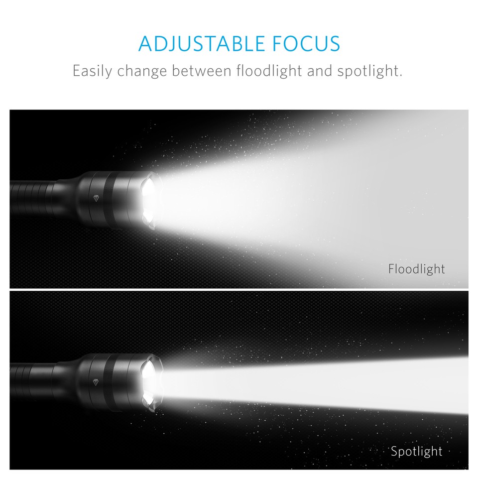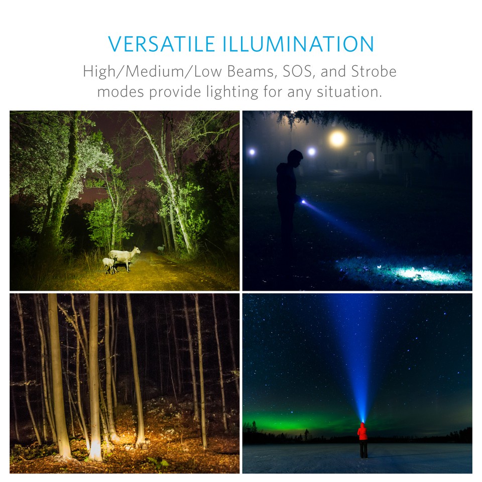 Anker T1425 Bolder LC90 2-Cell Rechargeable Flashlight, IPX5 Water-Resistant, Zoomable, LED Torch for Camping and Hiking