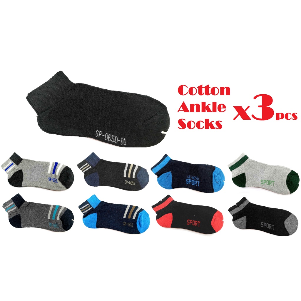 Stokin Lelaki | Ankle Cushion Base Socks - Basic Design with Lines