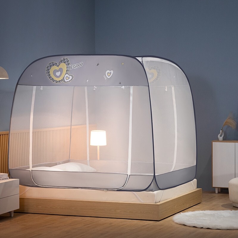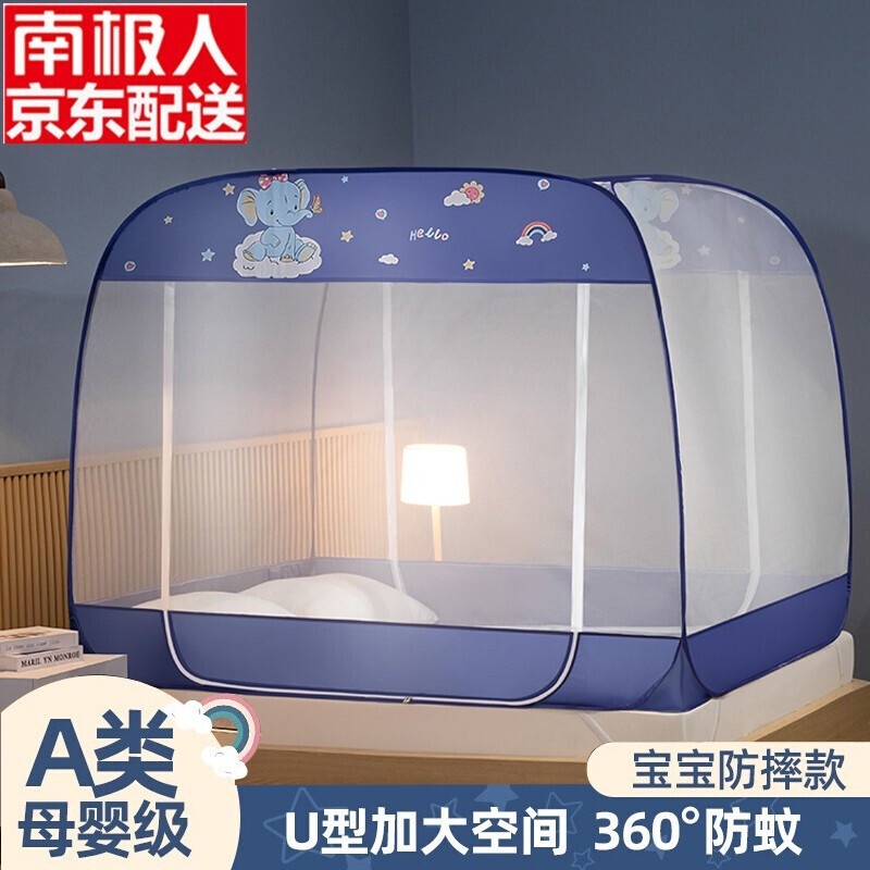 Antarctic Textile Installation-Free Zipper Mosquito Net Three-Door Installed on the Bed-Type Large Top Court Full Bottom