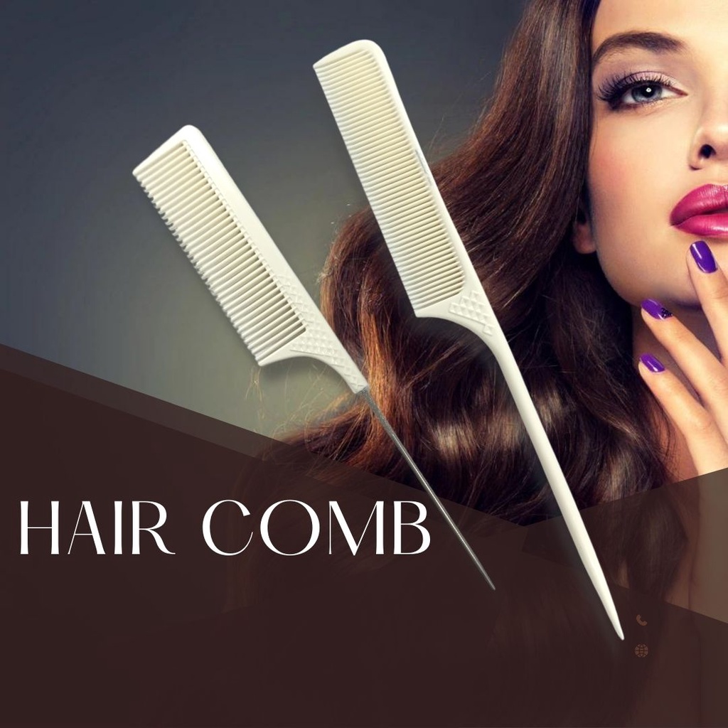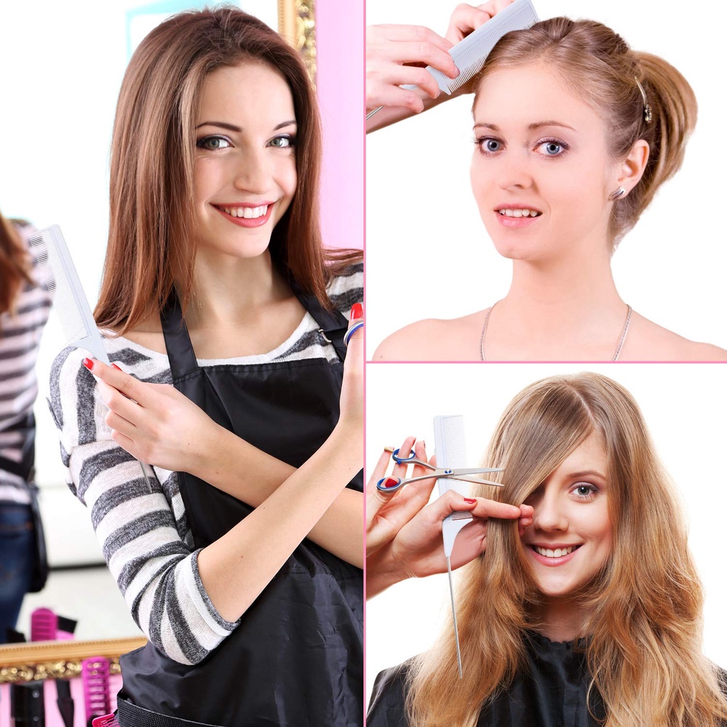 Anti-Static Fine Tooth Comb and Hair-Cutting, Styling Tool for Barbers Salon with Long Thin Handle(White)