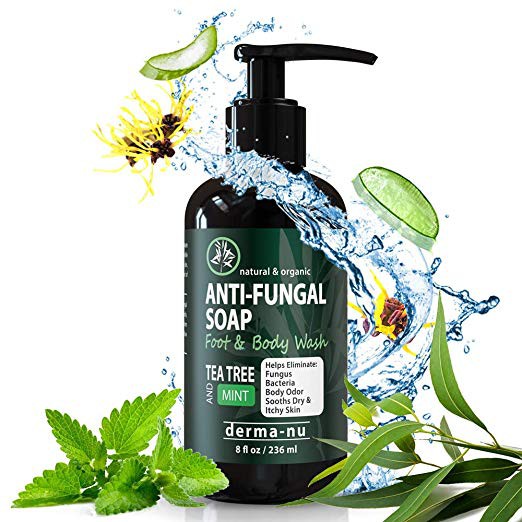 Antifungal Antibacterial Soap & Body Wash 8oz Natural Anti-Fungal Treatment with Tea Tree Oil for Jock Itch, Athletes Foot, Body Odor, Nail Fungus, Ringworm, Eczema & Back Acne - For Men and Women
