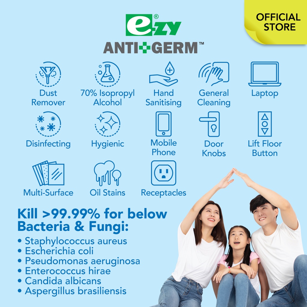 EzyWipes Antigerm Alcohol Disinfectant Wipes (100's x 2 Canisters)