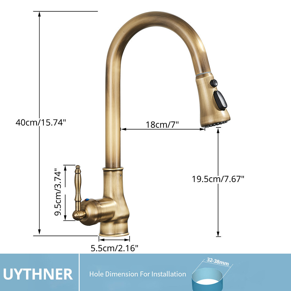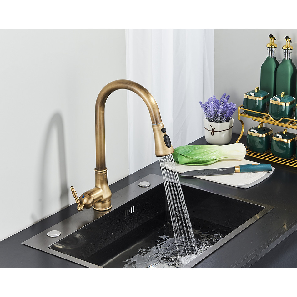 Antique Brass Kitchen Faucet Pull Out Kitchen Sink Water Taps Single Handle Mixer Tap 360 Rotation Cranes Deck Mounted