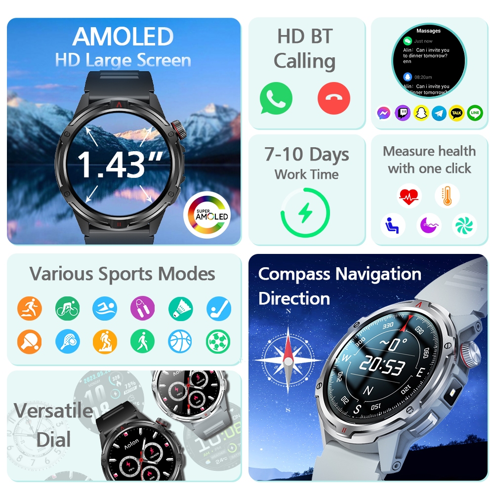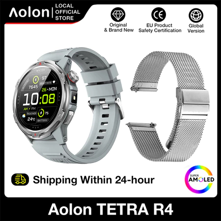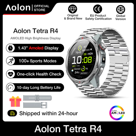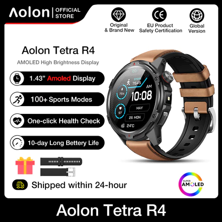 Aolon Tetra R4 Smart Watch 1.43" AMOLED Screen DIY Watch Face Bluetooth Call WA Read 100+ Sports Mode Strava Smartwatch Jam Tangan Lelaki