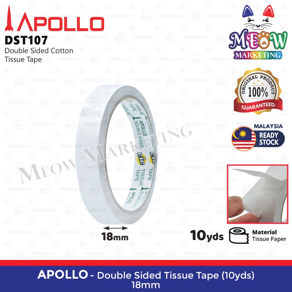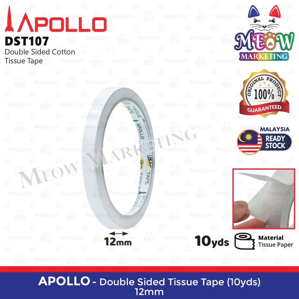 Apollo Double Sided Tissue Tape 10 yards - 6mm / 12mm / 18mm / 24mm