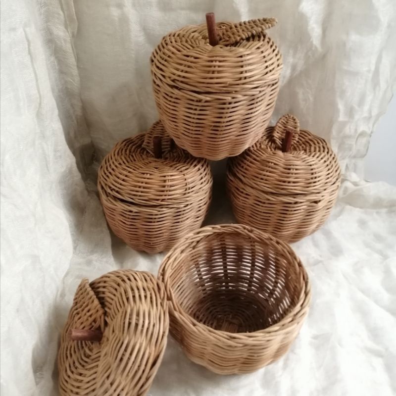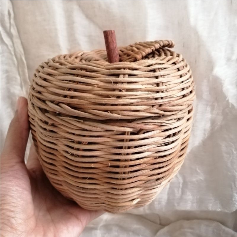 Apple shaped rattan basket kids baby toy bakul rotan boho rustic farmhouse photography props montessori muji