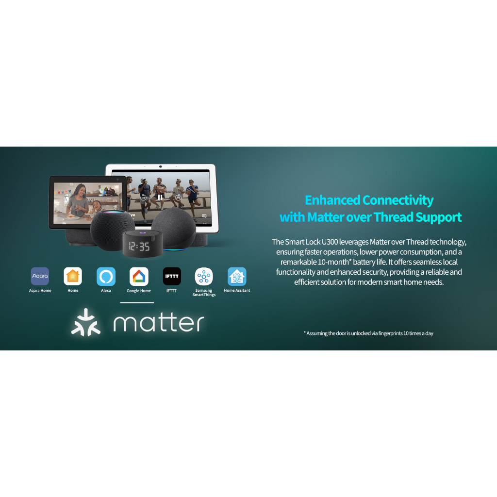 Aqara Smart Lock U300, Fingerprint Door Lock with Handle, Matter Over Thread with Apple Home Keys Global Version