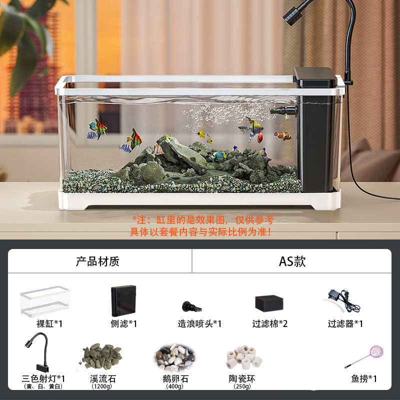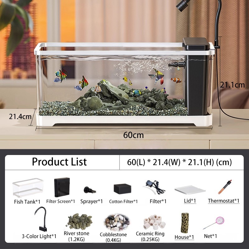 Aquarium Tank Aquarium Accessori Fish Tank for Beginners with LED Light and Water Pump 水族鱼缸