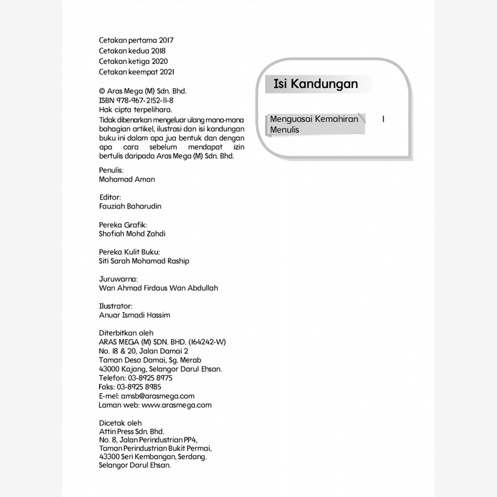 Aras Mega - Siri Pendidikan Prasekolah Bestari - Bahasa Melayu Buku 1 - Buku 4 | buku prasekolah bahasa melayu