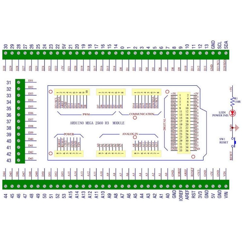 Arduino MEGA-2560 R3 DIN Rail Mount Screw Terminal Block Adapter Module, For MEGA-2560 R3.Approx.