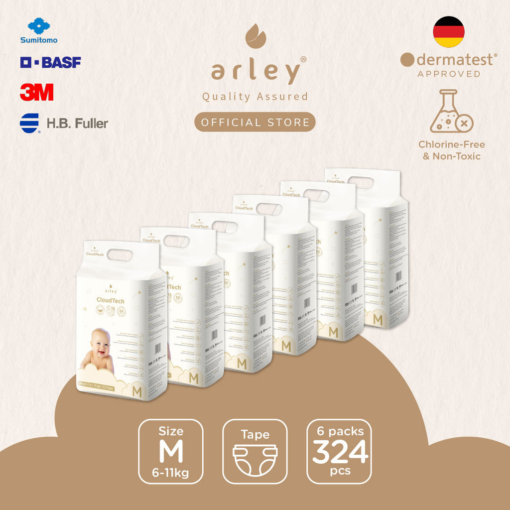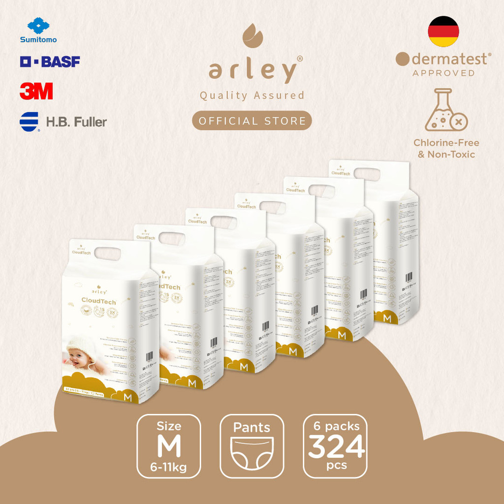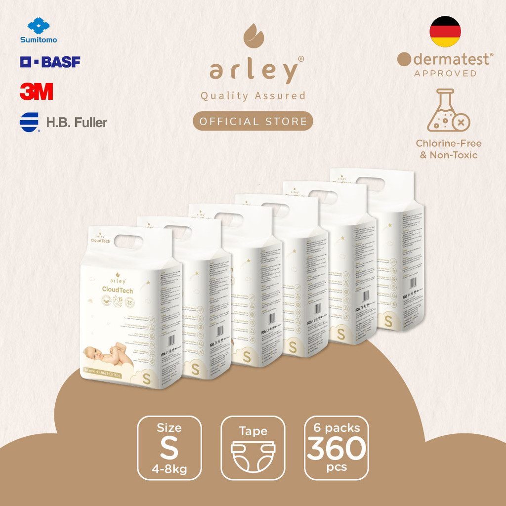 Arley CloudTech Diapers 6x Packs Tape/Pants(S/M/L/XL) German-certified.Chlorine-Free.Japan Tech. Dermatest Cert