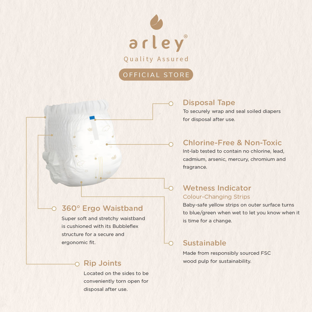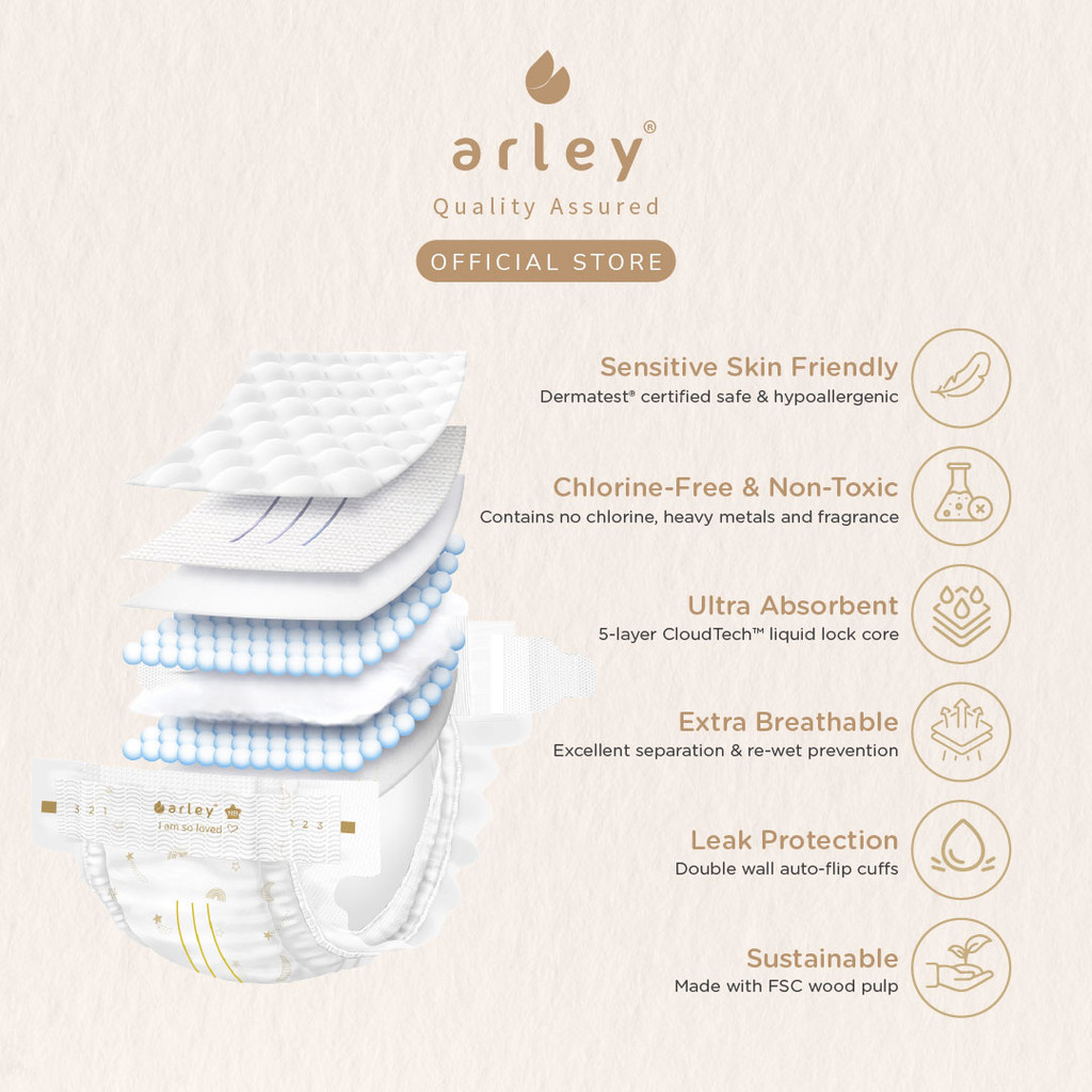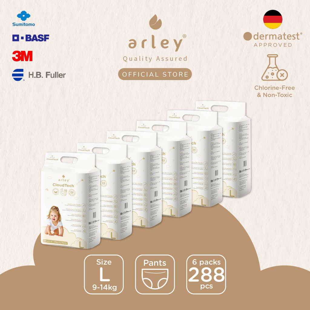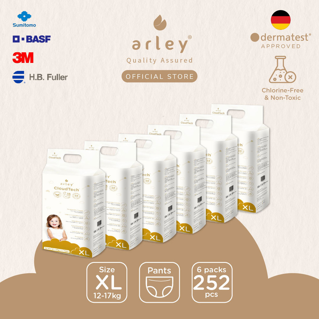 Arley CloudTech Diapers 6x Packs Tape/Pants(S/M/L/XL) German-certified.Chlorine-Free.Japan Tech. Dermatest Cert