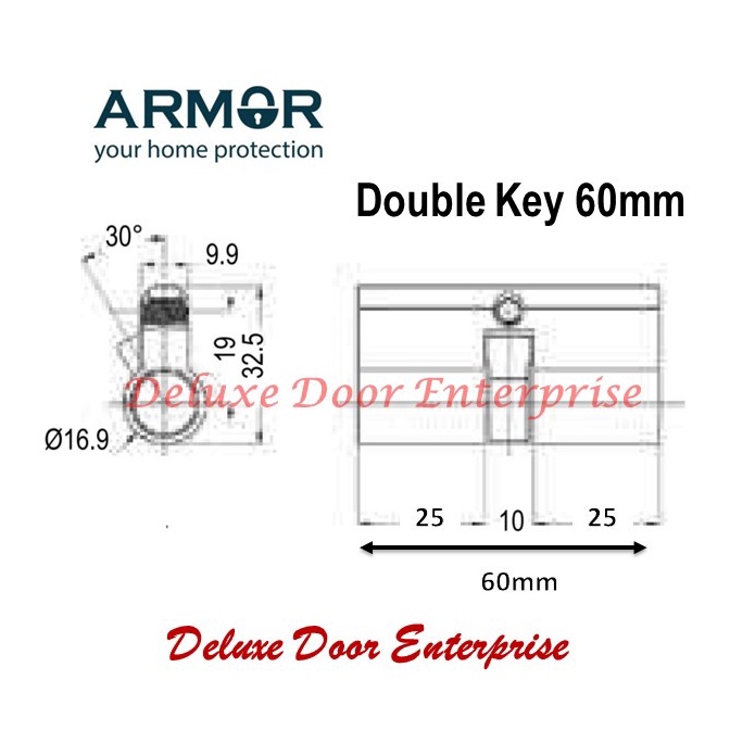 Armor Euro profile Cylinder Double Key 60mm Matt Black Double Key Profile Cylinder Matte Black Cylinder Grille Key