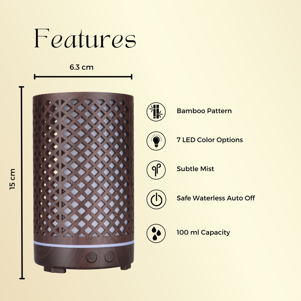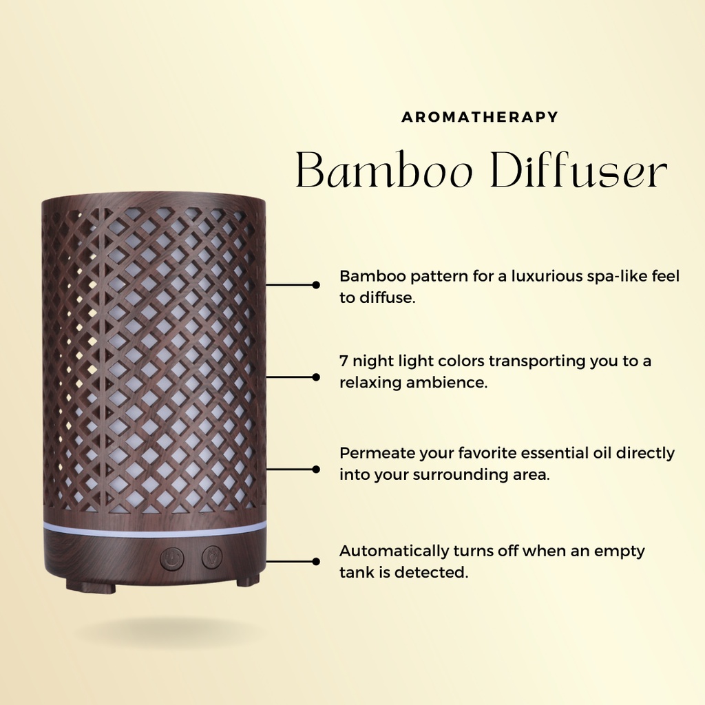 Starter Kit Aroma Bamboo Diffuser with FREE 2 Essential Oils - For Essential & Fragrance Oils
