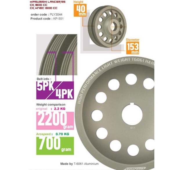Arospeed Proton Wira 1.6 1.8 4G92 Perdana V6/Lancer CK 1.8 Light Weight Crank Pulley Gold Engine Performance Pully